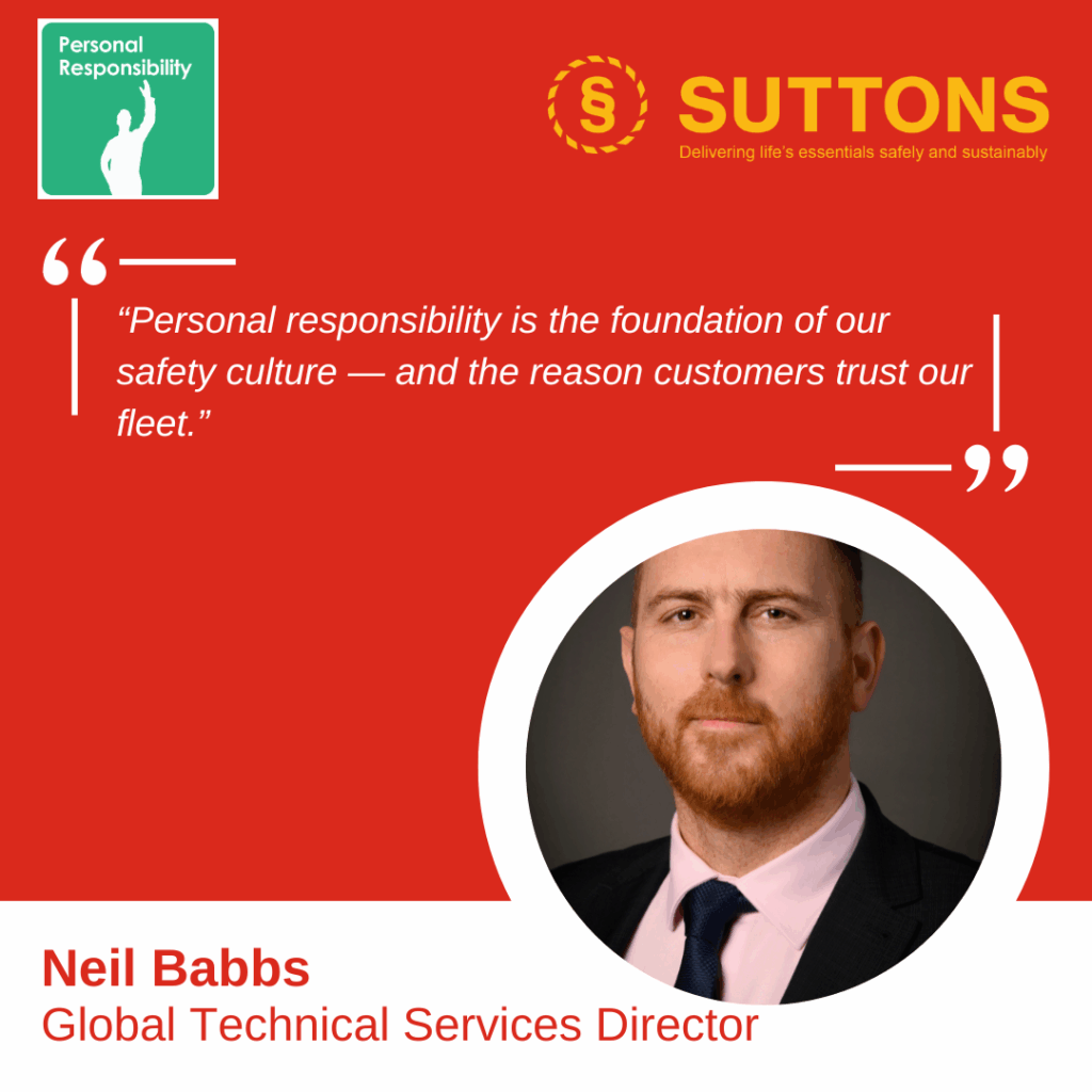 At Suttons, that sense of responsibility is part of our DNA. It’s the reason our fleet maintains such a strong safety record and why our customers trust us with their most critical products. Personally, I see it as a reflection of our culture, one built on trust, pride, and professionalism. Safety doesn’t happen by chance; it happens because our people take Personal Responsibility, every single day.